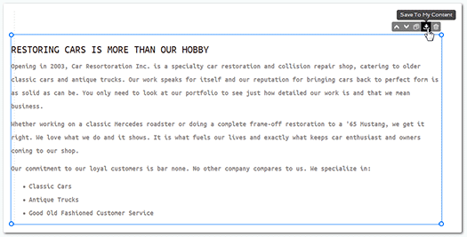 - Click the Save to My Content icon in the upper left corner of the content block
